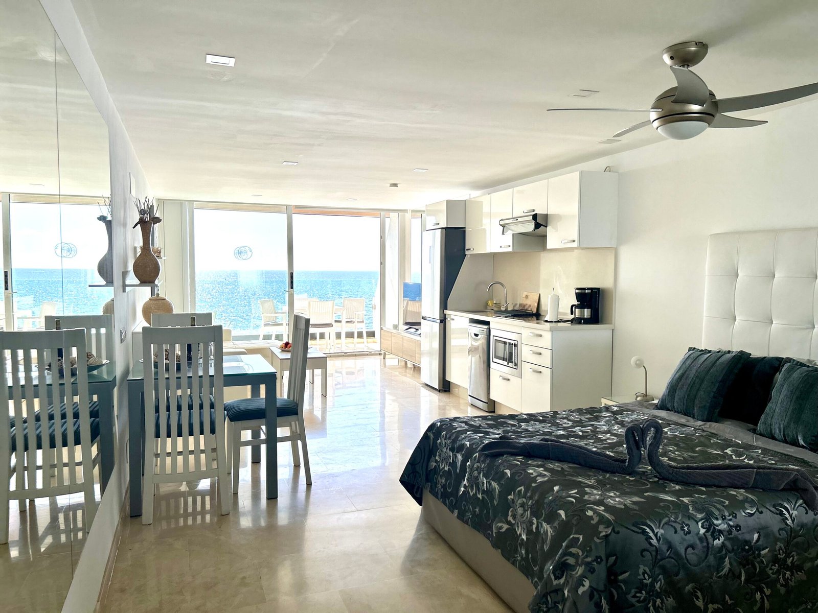 Este elegante estudio-apartamento está completamente equipado para satisfacer todas sus necesidades. La cocina integrada cuenta con modernos electrodomésticos, como vitrocerámica, cafetera, hervidor, microondas, tostadora, frigorífico y congelador. Además, disfrute de comodidades adicionales, como aire acondicionado, conexión WiFi gratuita, lavavajillas, Smart TV de pantalla plana con servicios de streaming (incluido Netflix), baño con ducha y secador de pelo, ropa de cama de calidad, toallas, caja fuerte y acceso a lavadora y secadora compartidas.